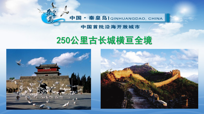 秦皇岛历史悠久,是闻名中外的滨海旅游名城。古有“碣石”之称,今有“夏都”美誉,1898年,清光绪帝御批秦皇岛开埠建港,辟北戴河为旅游避暑区,成为中国最早的自主通商口岸和国际旅游区。1984年被国务院批准为全国首批对外开放的沿海城市。建国后,北戴河成为中外闻名的“夏都”。近代伟人孙中山、李大钊、毛泽东、邓小平等先后在此驻足流连,毛泽东主席一首脍炙人口的《浪淘沙·北戴河》,使秦皇岛闻名遐迩。北京奥运会足球比赛成功举办,留下弥足珍贵的奥运文化遗产。